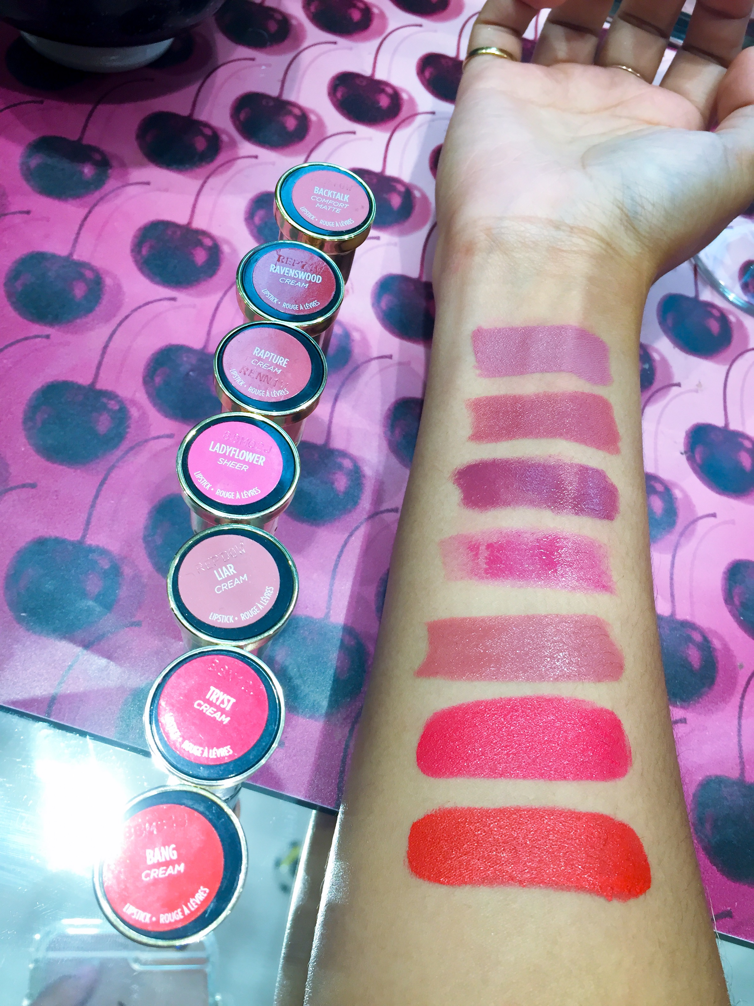 We swatched some lipsticks that would be ideal Valentine’s Day colours and gifts. We swatched a combination of reds, oranges, nudes and plum shades. Most of the lipsticks we tried were cream and sheer. The lipstick I wore (‘1993’ Vice Lipstick) was cream based and lasted for hours – even after eating and drinking. It did not bleed or transfer.